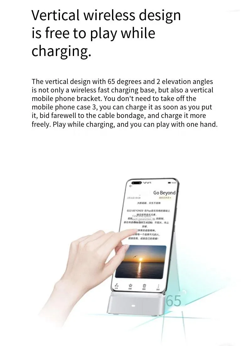 This 100W fast charging stand provides powerful and efficient charging while keeping your device upright for easy viewing. The stand-style design allows you to use your phone hands-free while it charges, making it perfect for desks, nightstands, and workspaces. Built for stability and convenience, it supports high-speed charging with compatible power adapters.