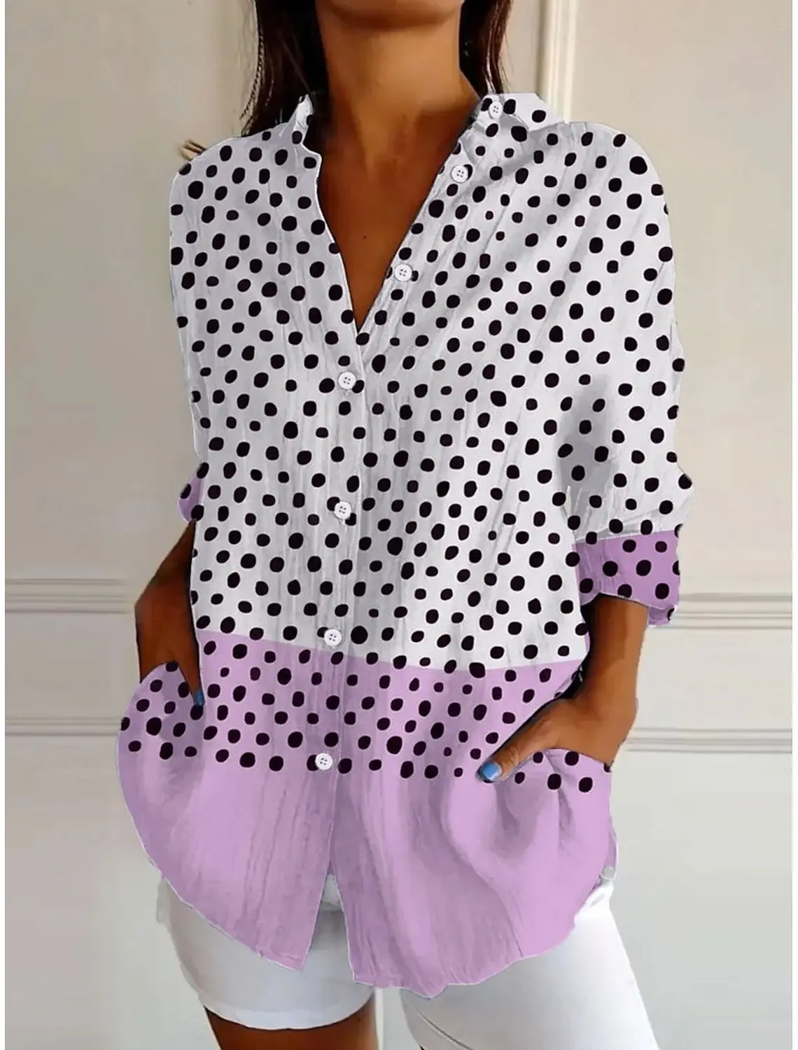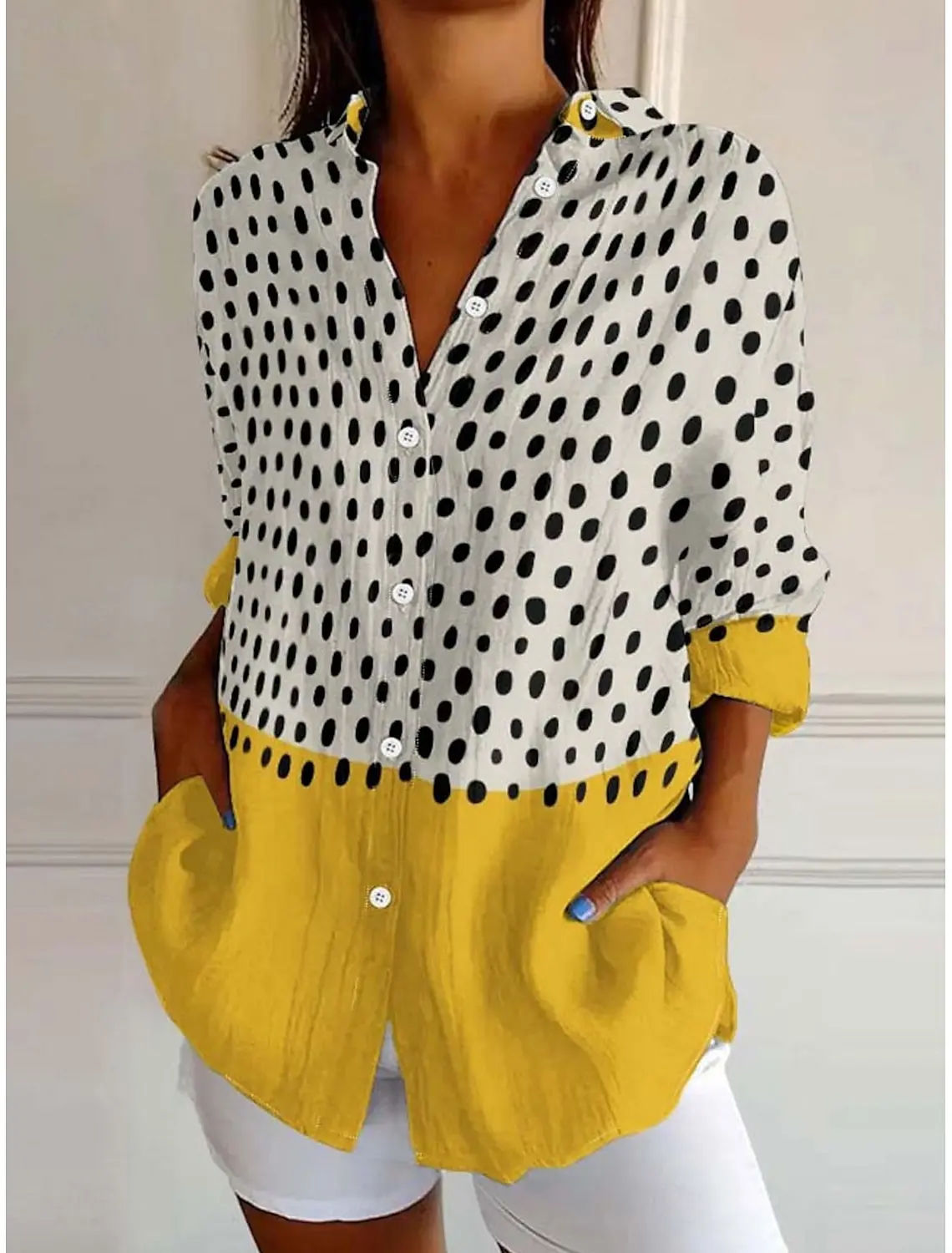 This men’s polka dot shirt combines modern style with casual comfort. Designed with a turn-down collar and button-front closure, it’s made from a lightweight polyester-spandex blend that provides a soft stretch and breathable feel. Perfect for both casual outings and semi-formal occasions.