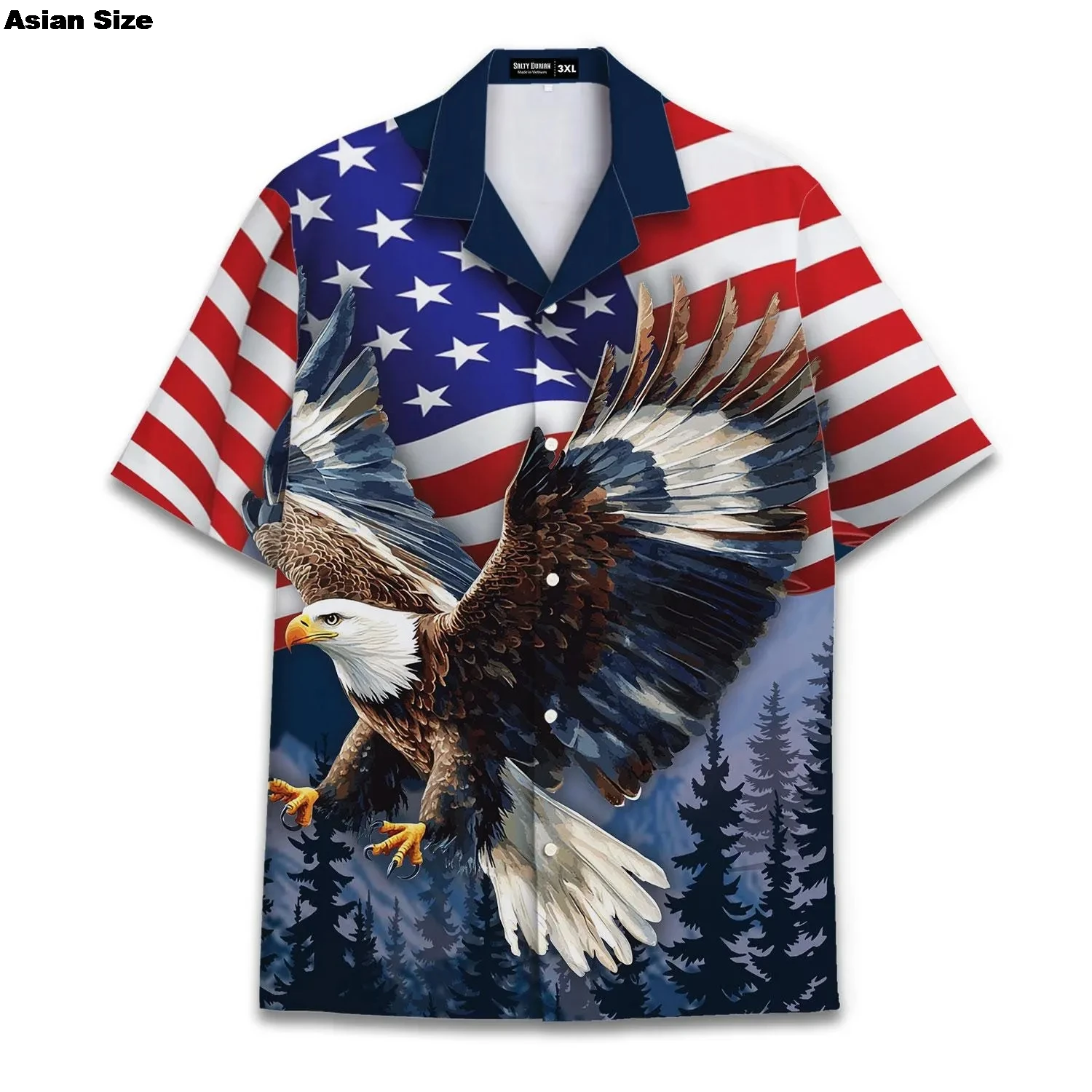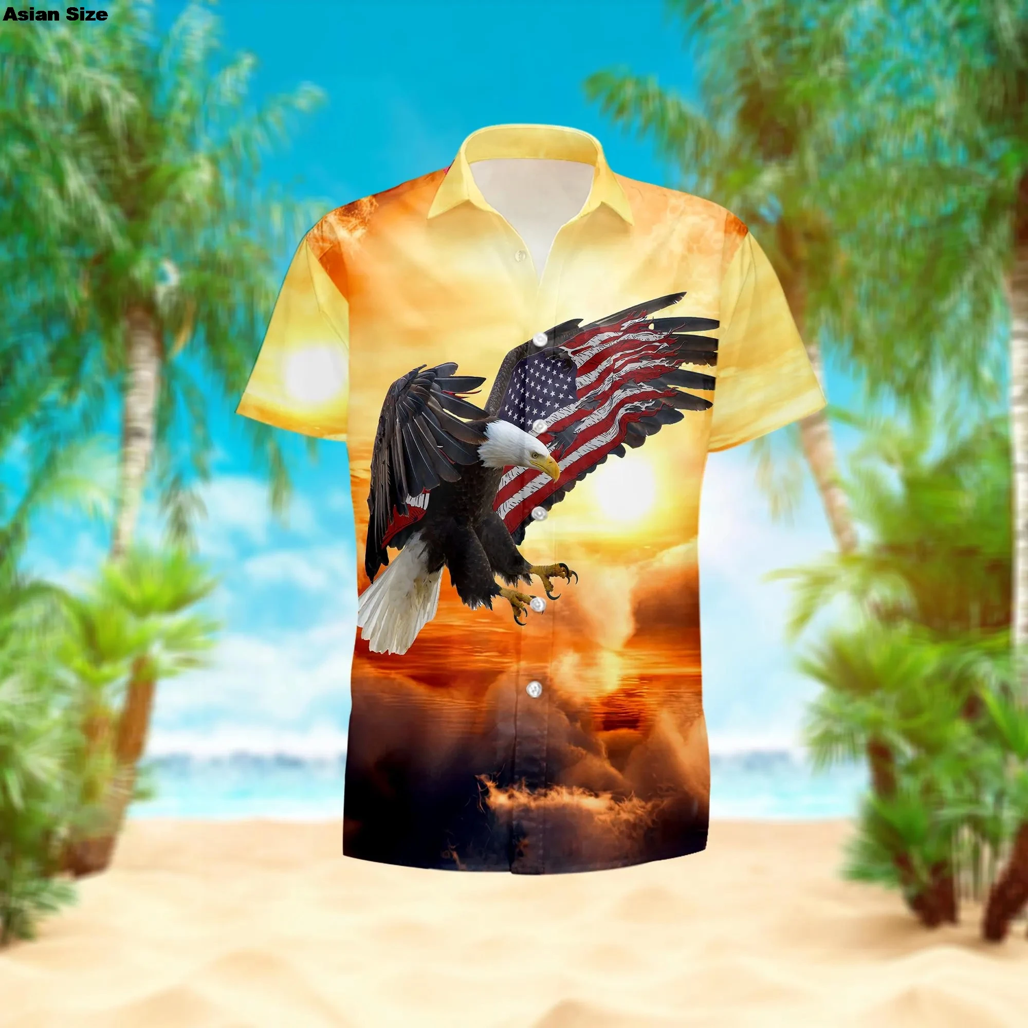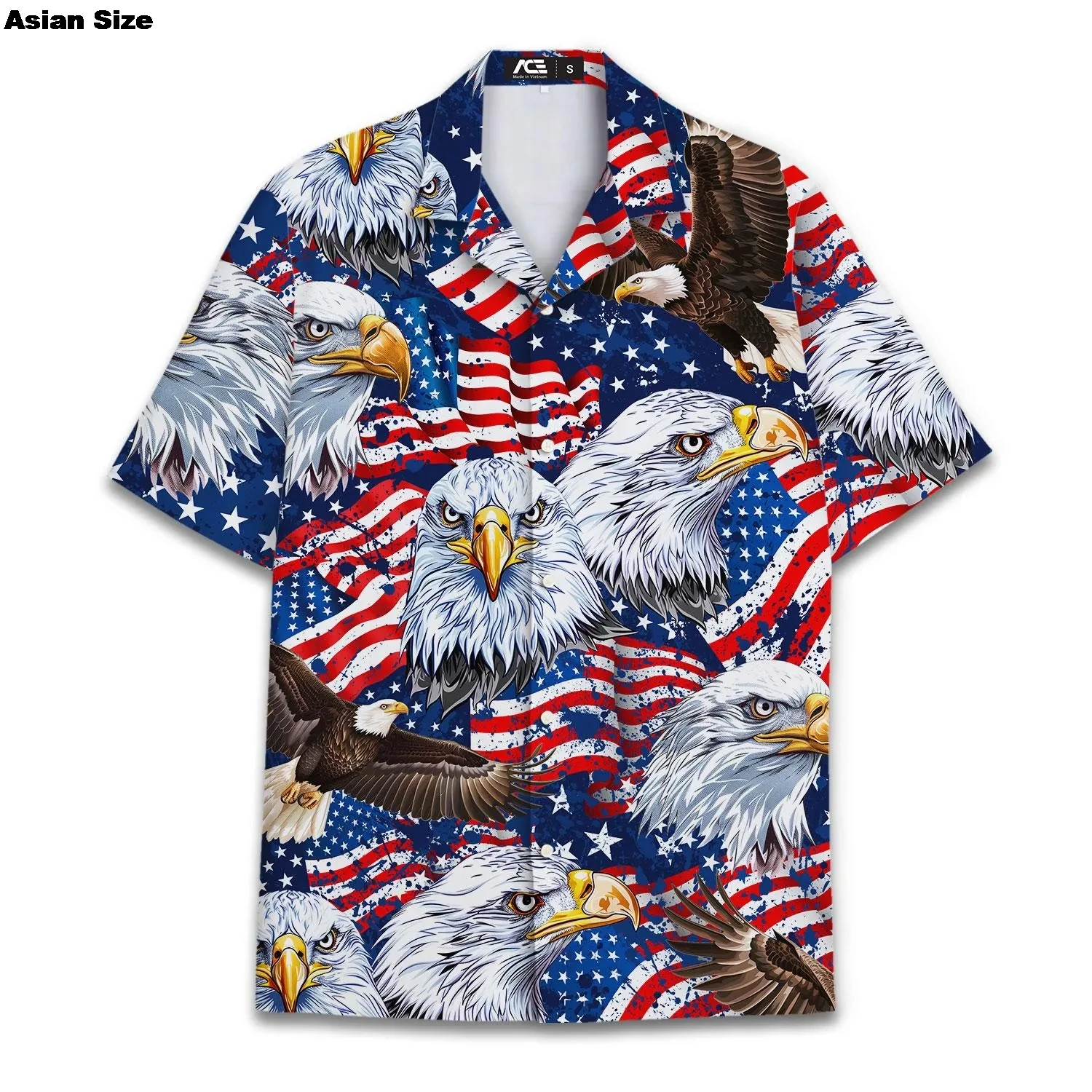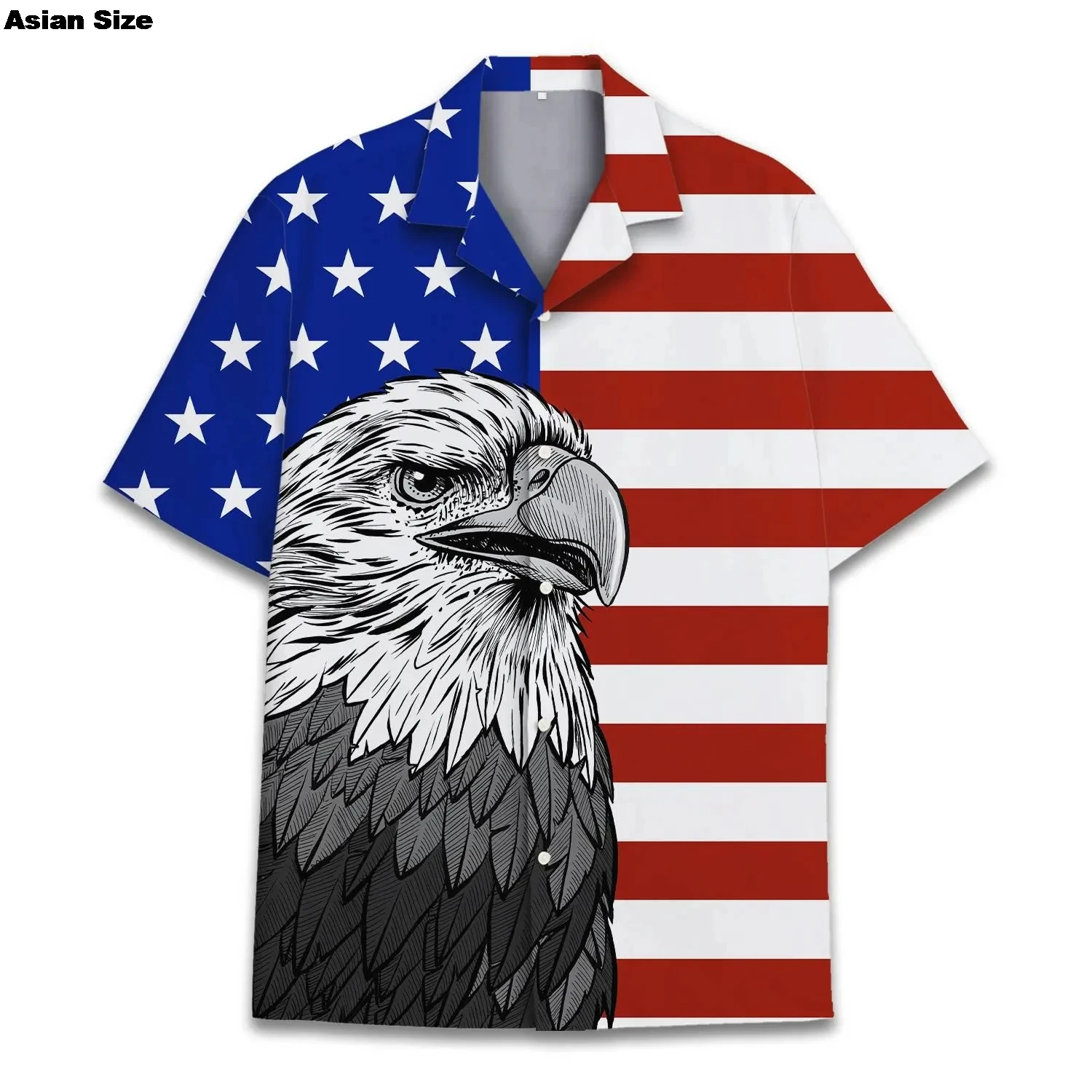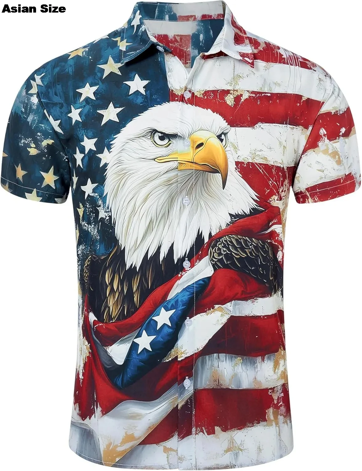 American Eagle Hawaiian Shirts For Men America Flag Shirts Mens Short Sleeve Button Down Shirts Patriotic Shirt For Men Clothing