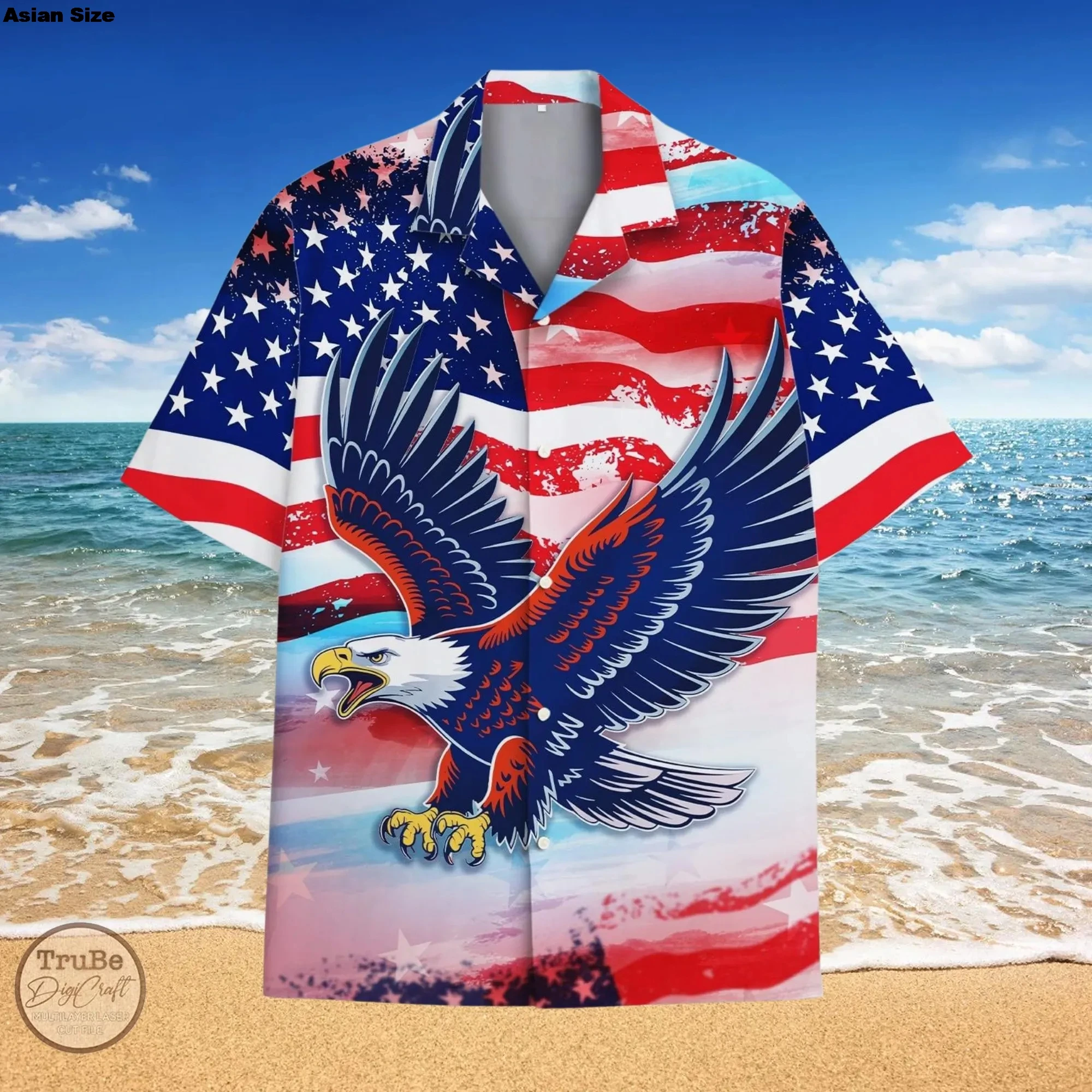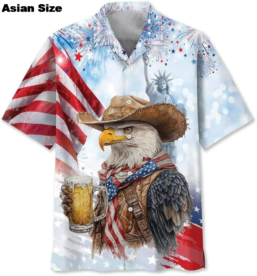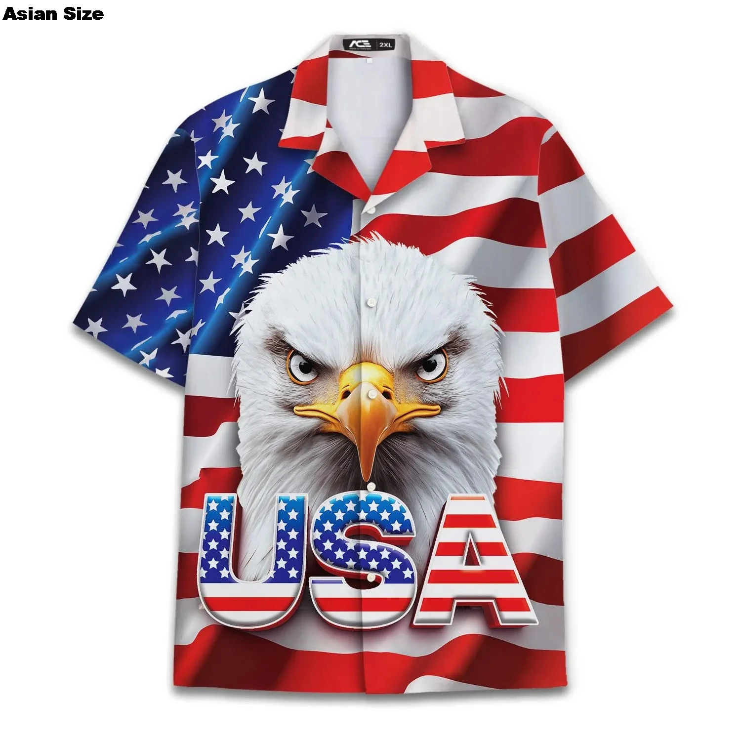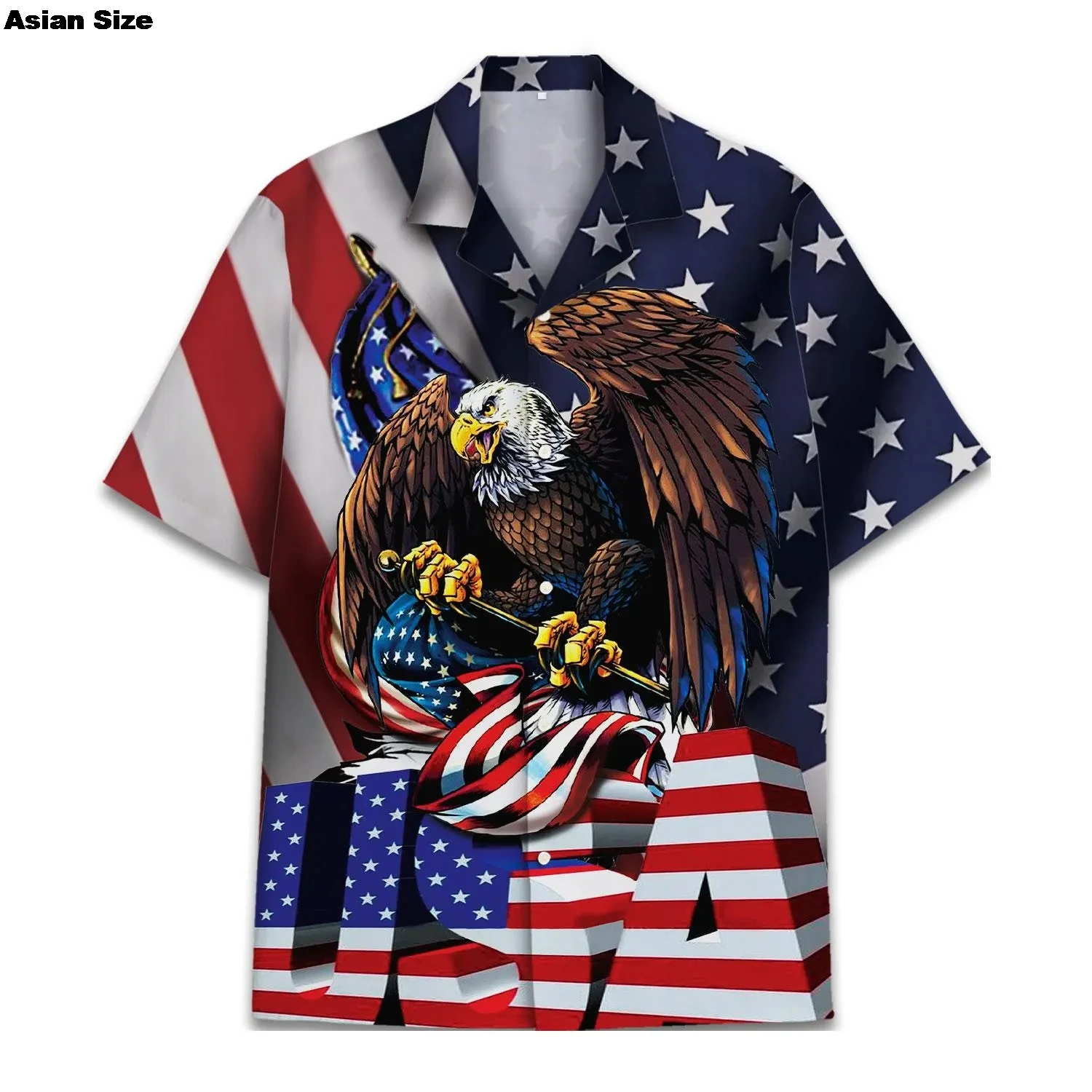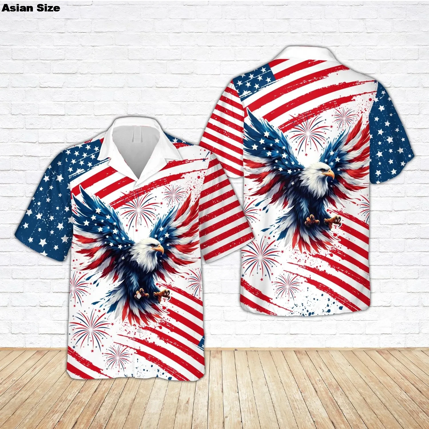 American Eagle Hawaiian Shirts For Men America Flag Shirts Mens Short Sleeve Button Down Shirts Patriotic Shirt For Men Clothing