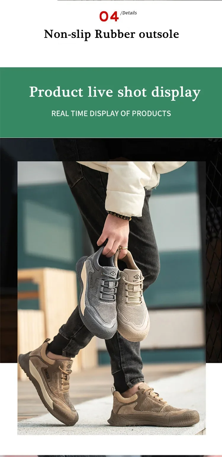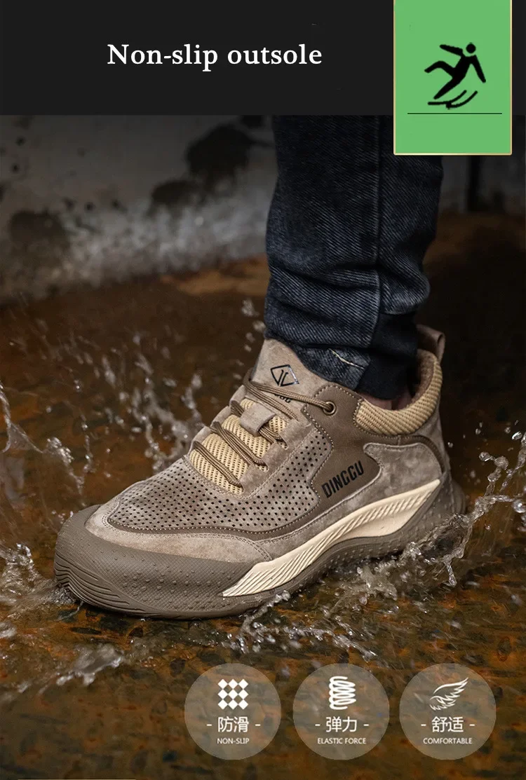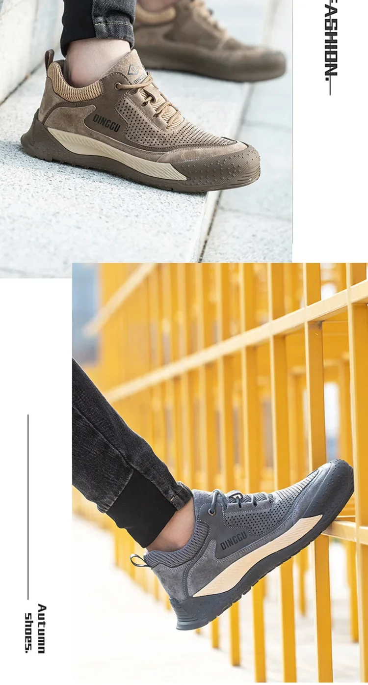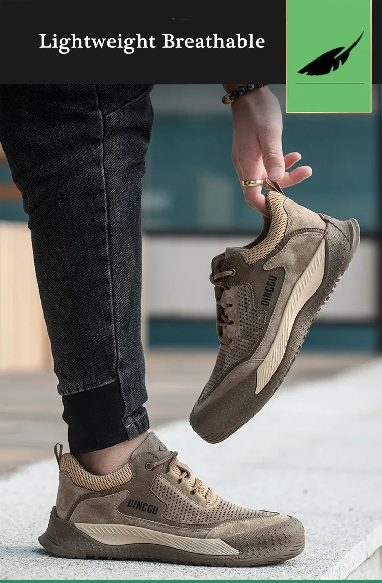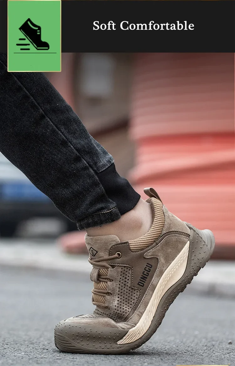 These men’s lightweight protective work sneakers are built for durability, comfort, and safety. Designed with a reinforced upper and flexible construction, they support everyday movement while providing reliable protection during work activities. The breathable mesh lining helps maintain airflow, and the EVA insole offers cushioning for long hours on your feet. The anti-slip outsole provides strong traction on various surfaces, making them suitable for job sites, outdoor tasks, and daily wear.