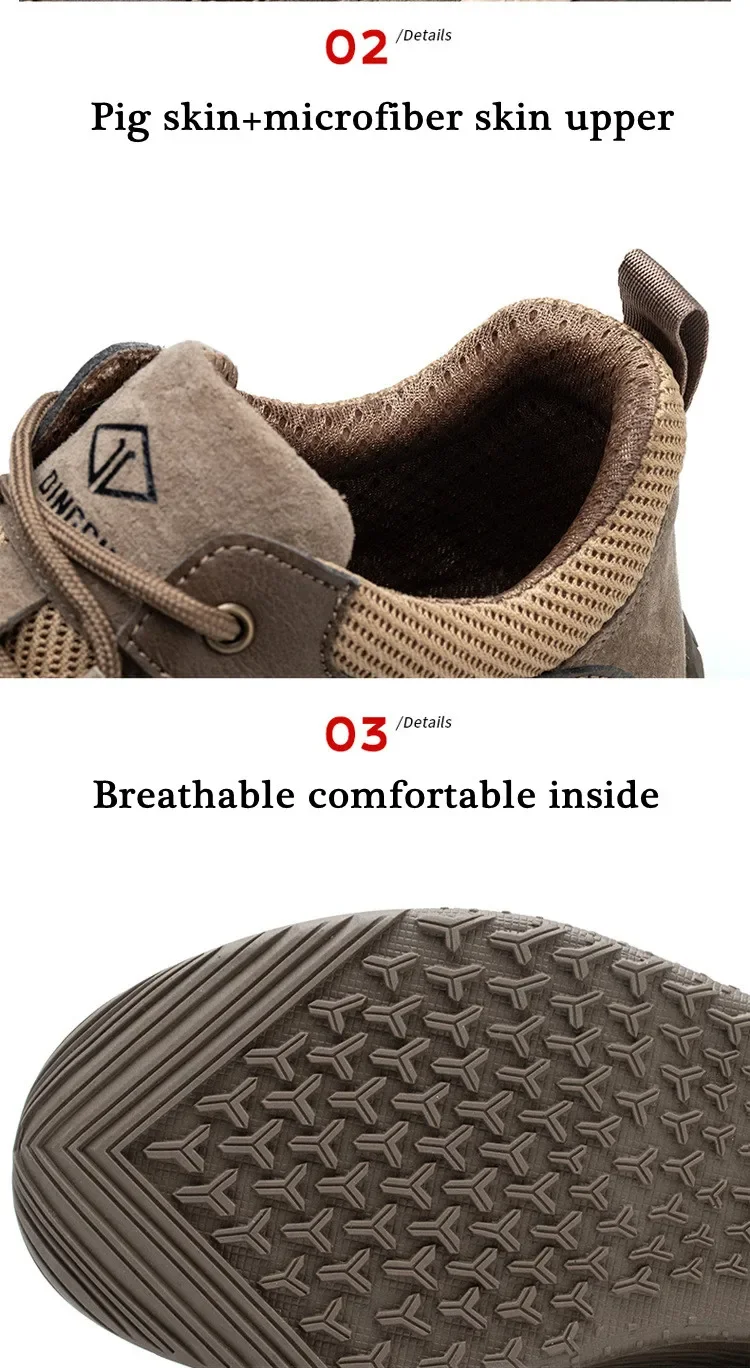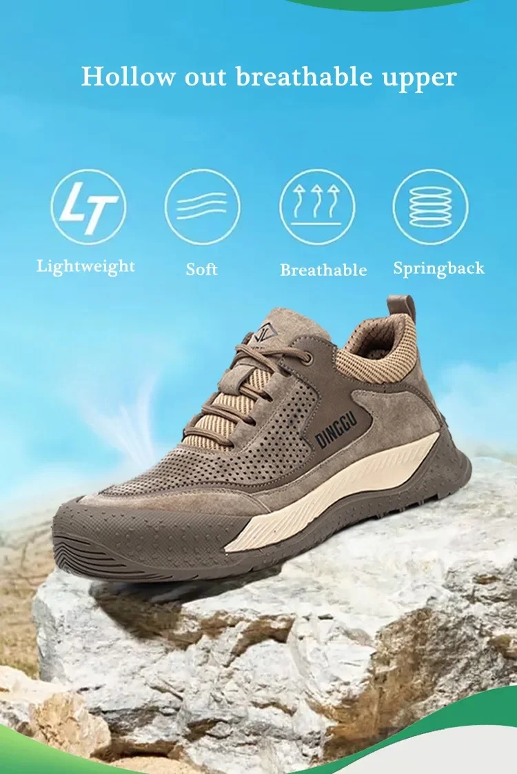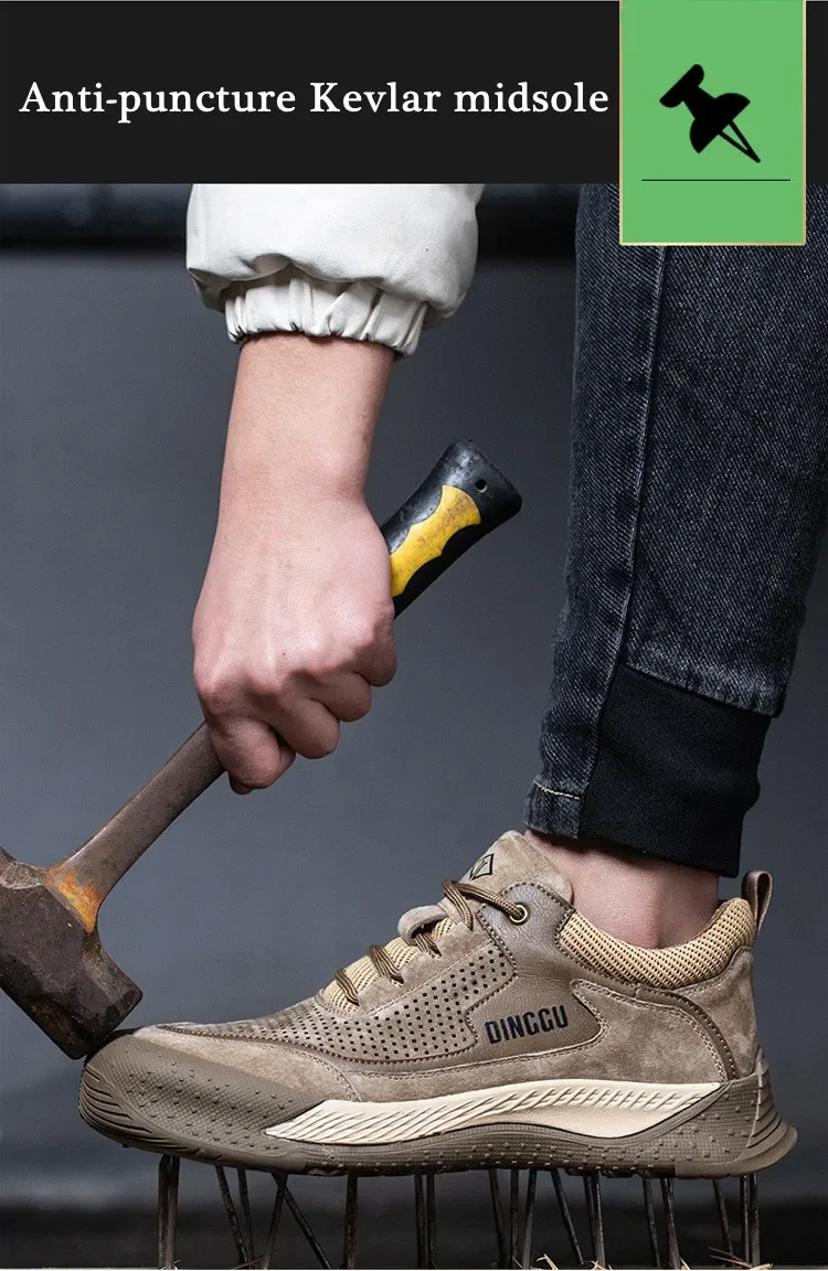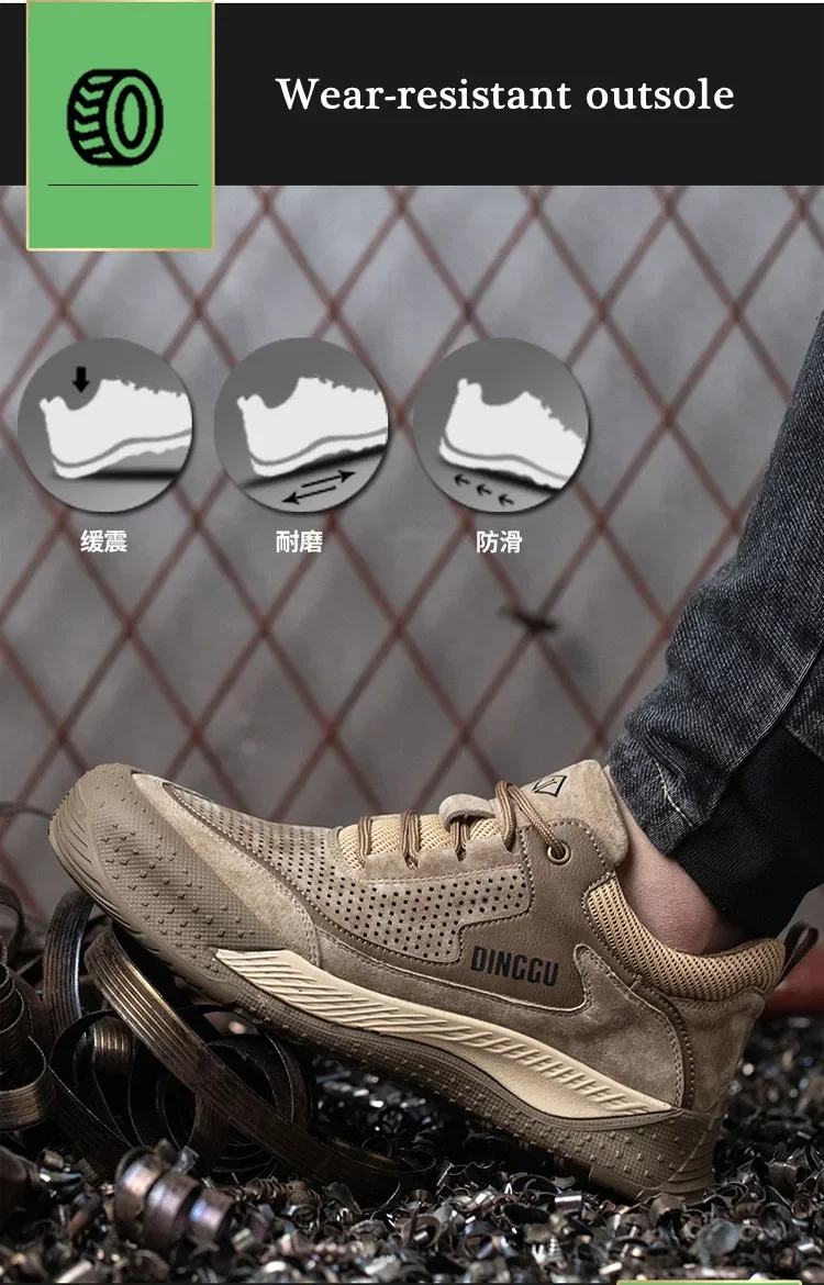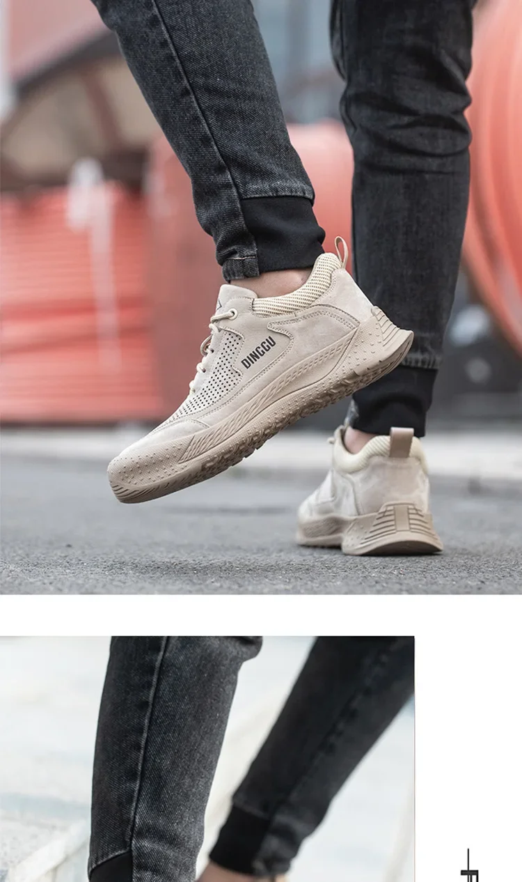 These men’s lightweight protective work sneakers are built for durability, comfort, and safety. Designed with a reinforced upper and flexible construction, they support everyday movement while providing reliable protection during work activities. The breathable mesh lining helps maintain airflow, and the EVA insole offers cushioning for long hours on your feet. The anti-slip outsole provides strong traction on various surfaces, making them suitable for job sites, outdoor tasks, and daily wear.
