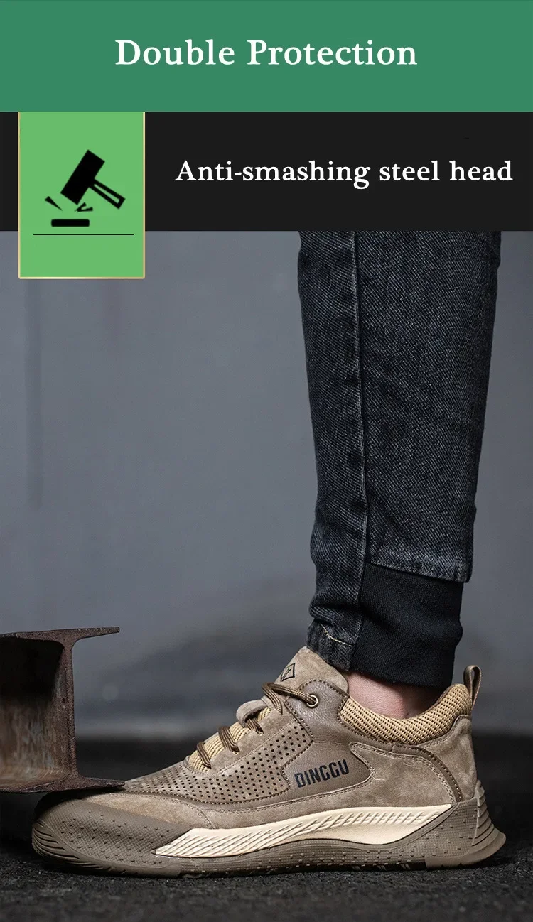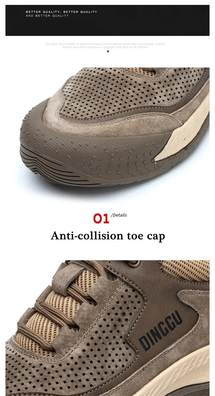 Men Steel Toe Shoes Men Breathable Work Shoes Women Hollow Out Upper Work Sneakers Lightweight Steel Toe Protective Safety Boots