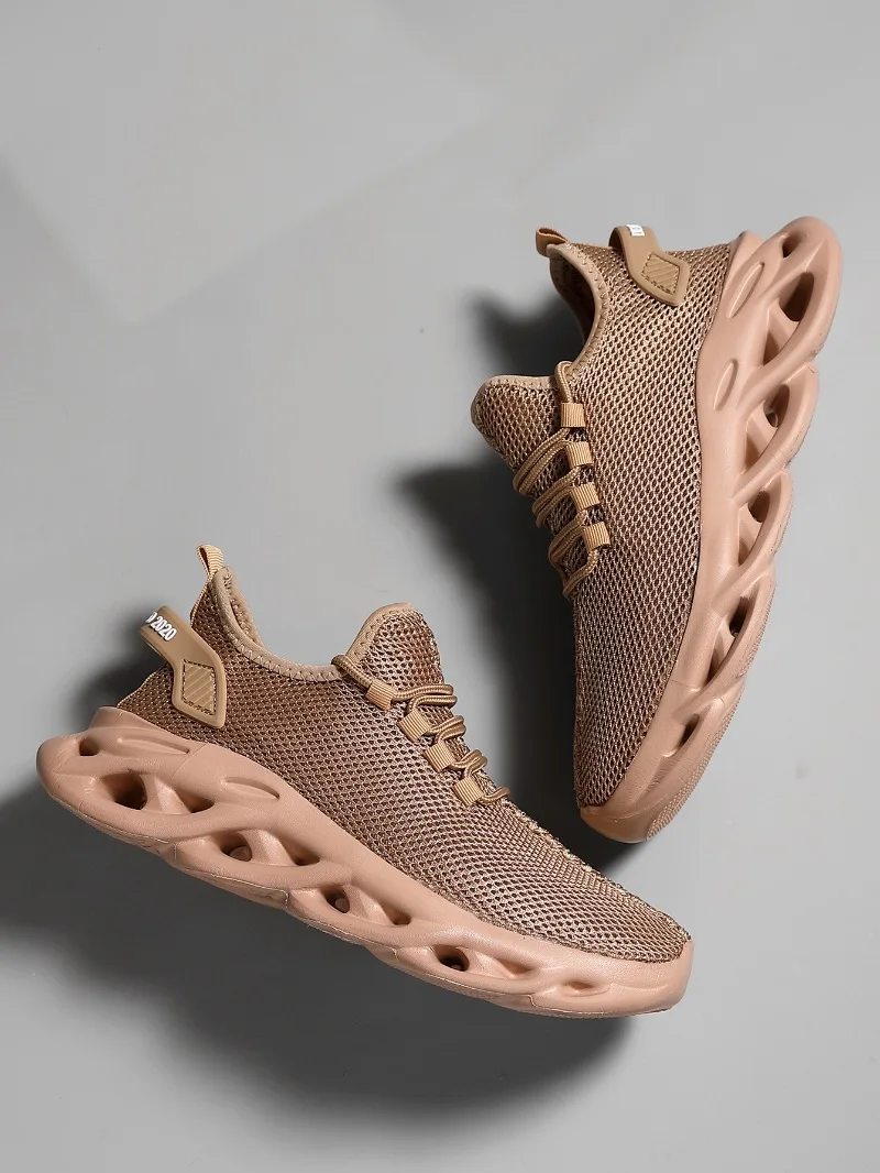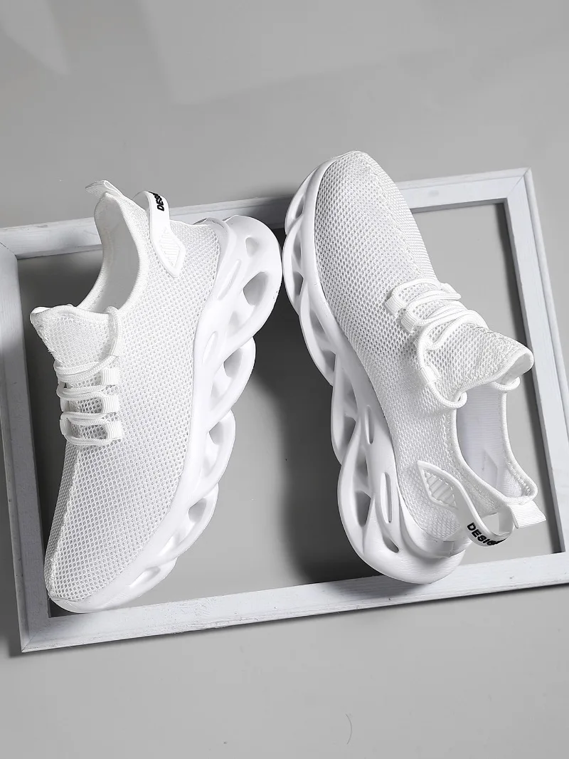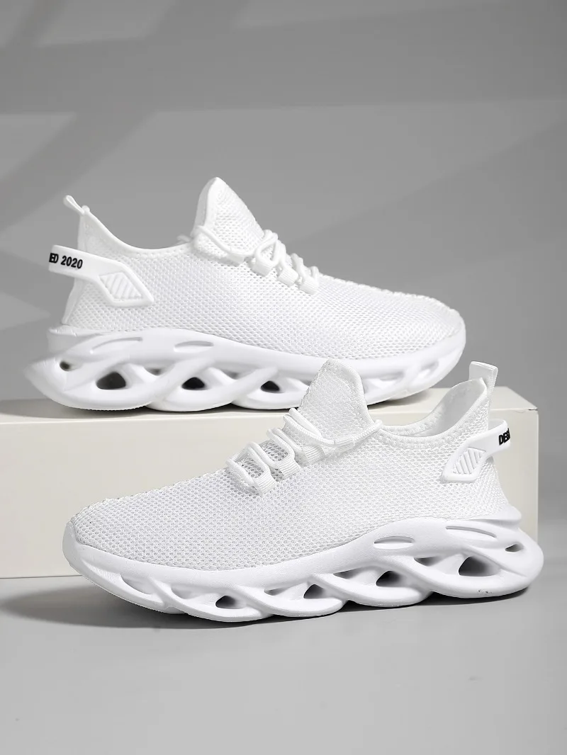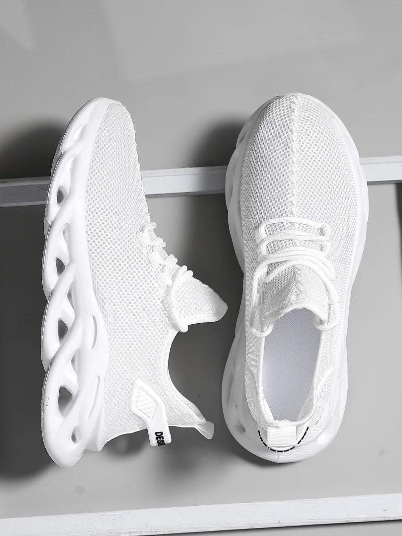 These men’s breathable walking sneakers combine comfort and style for everyday wear. The mesh upper enhances airflow to keep your feet cool, while the cushioned EVA insole provides support for long periods of walking. The lightweight wave-style outsole adds flexibility and shock absorption, making these sneakers ideal for casual outings, daily activities, and fitness walking.
