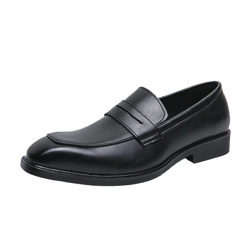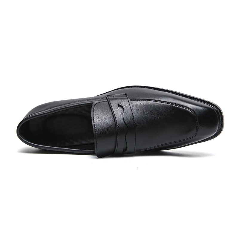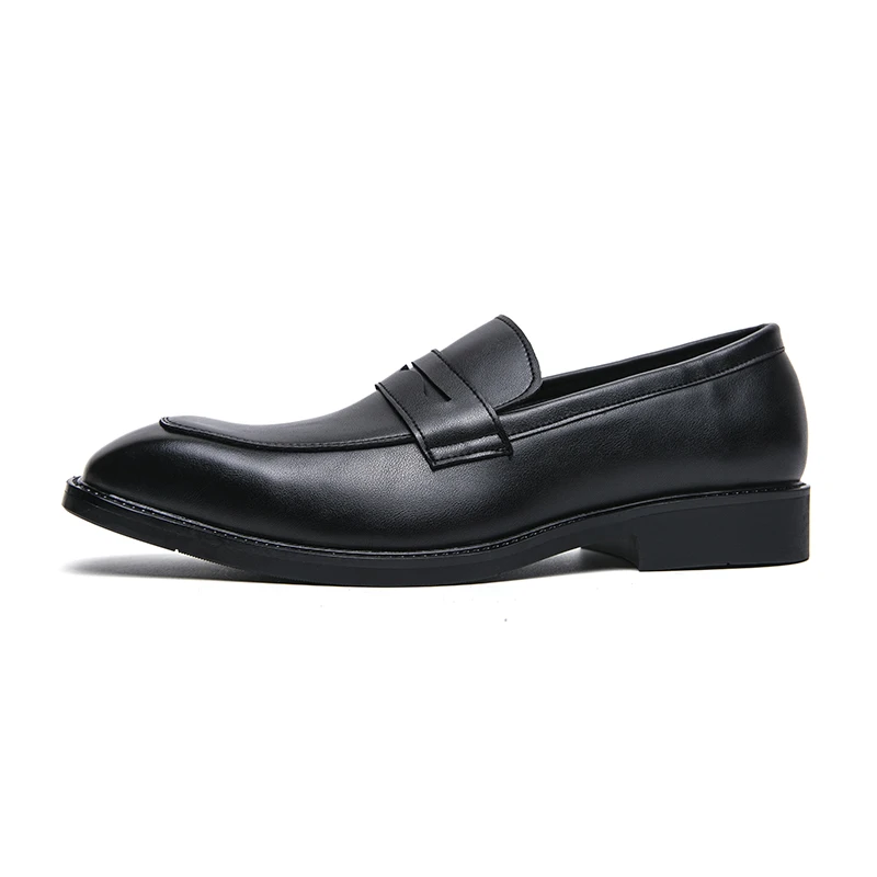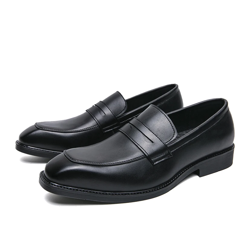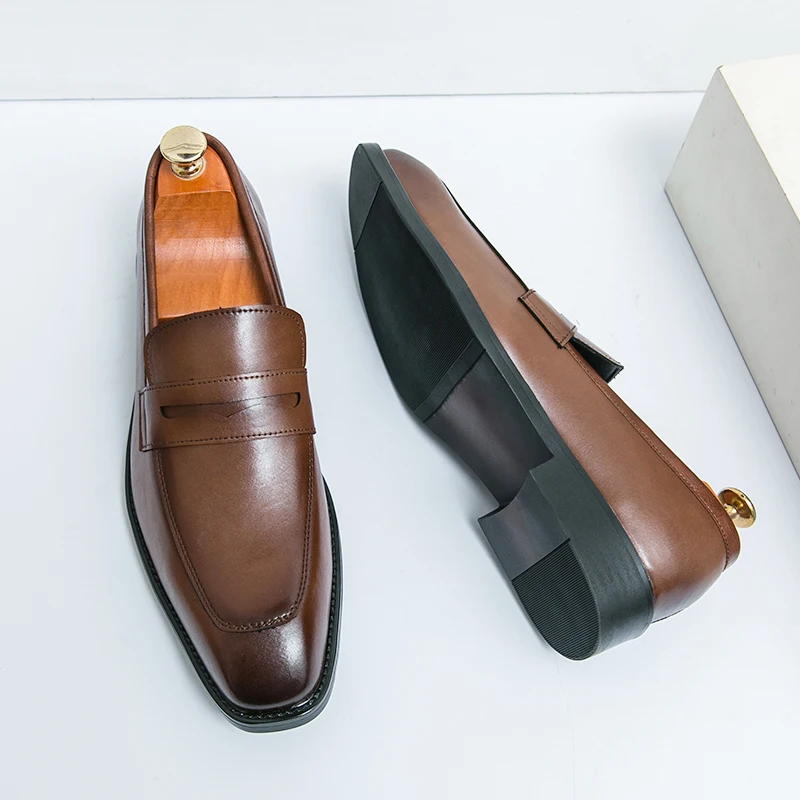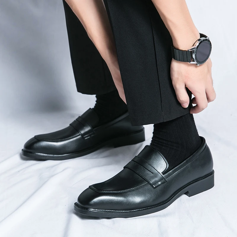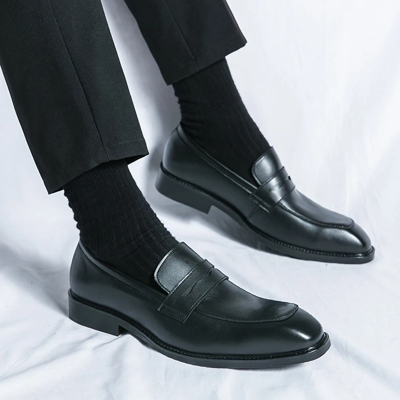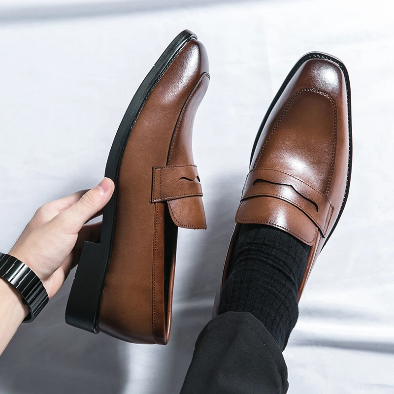 Fashion Penny Loafers Leather Men Shoes Simple Pointed Toe Slip On Dress Business Suit Casual Party Wedding Shoes For Man Brown