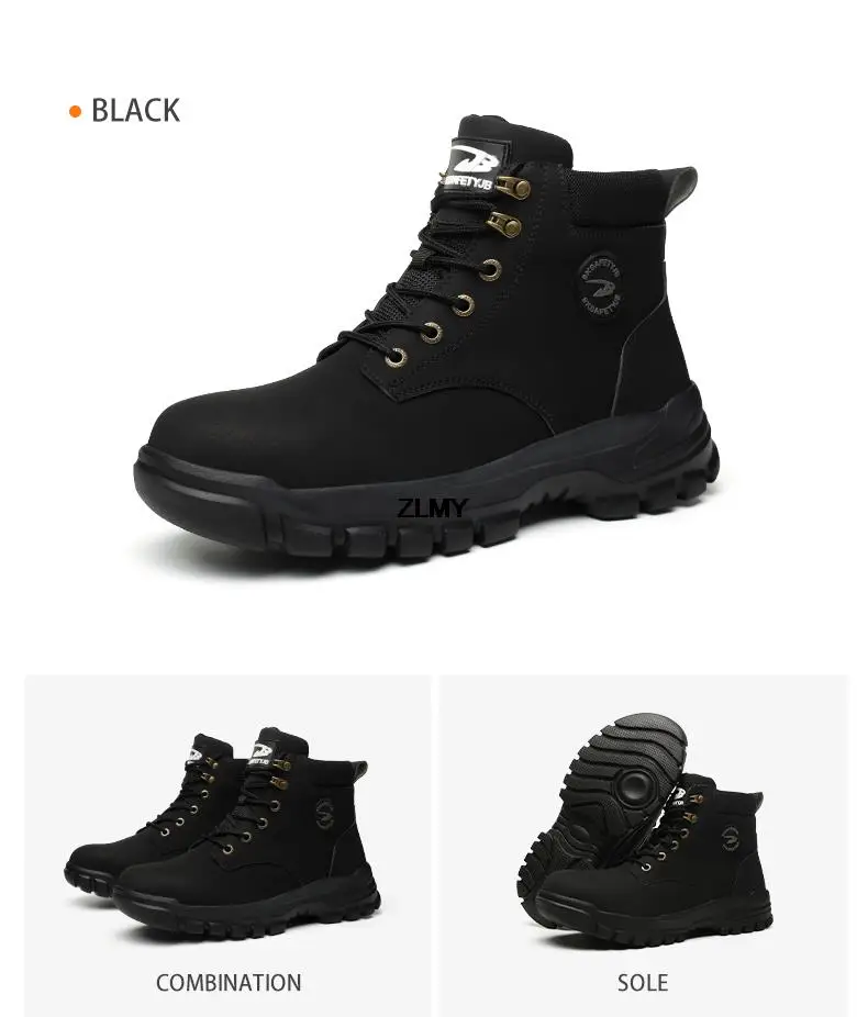 High Top Men Safety Shoes Steel Toe Work Safety Boots Man Puncture Proof Light Construction Work Shoes Plus Size 48 Welder Shoes