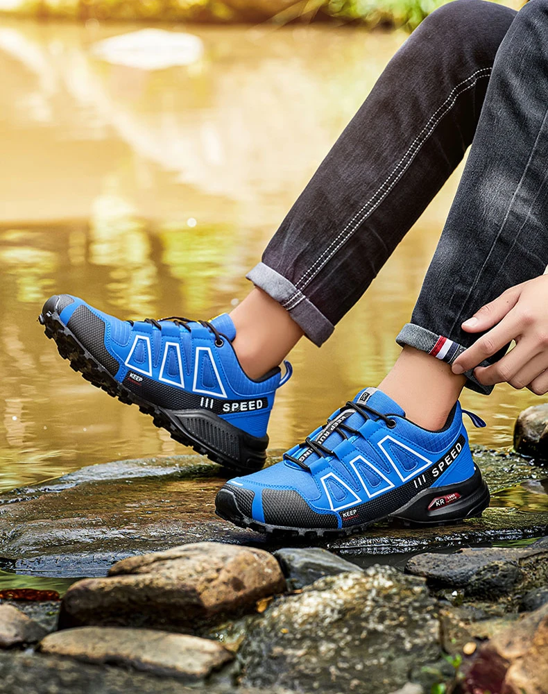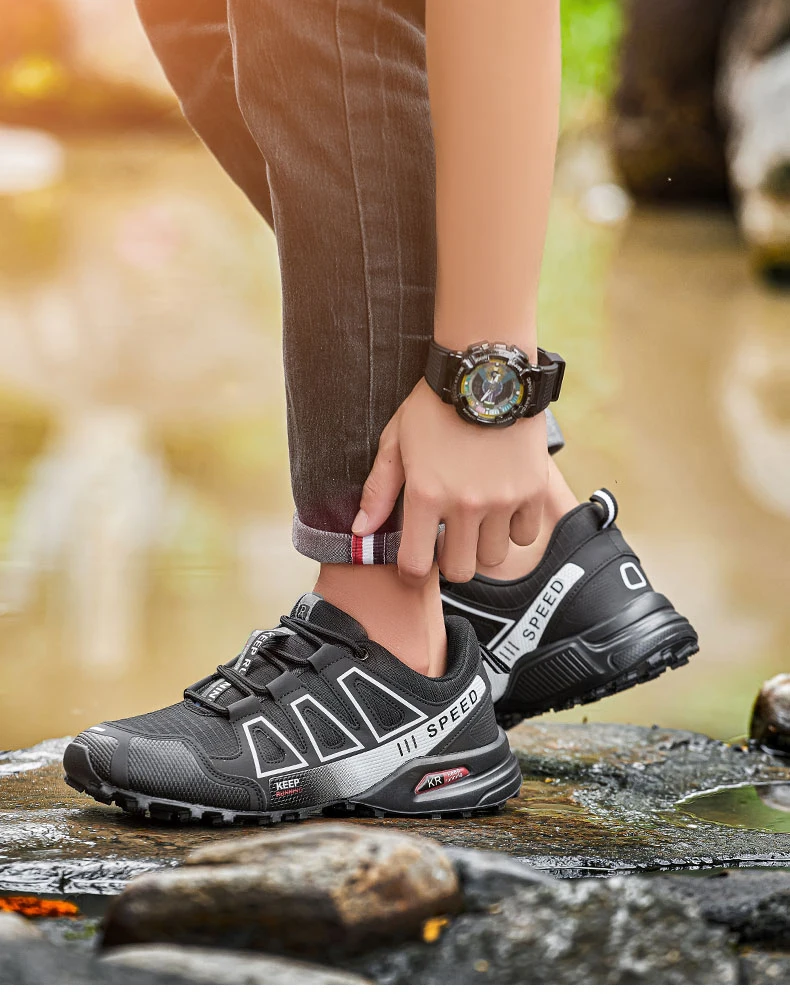 These men’s outdoor trail shoes are designed for comfort, durability, and stability on various terrains. Featuring a breathable upper and water-resistant construction, they are ideal for hiking, walking, and everyday outdoor activities. The cushioned insole and supportive outsole provide reliable comfort and traction.