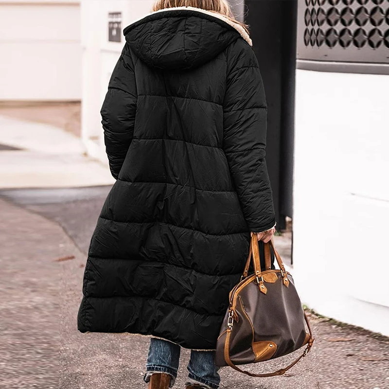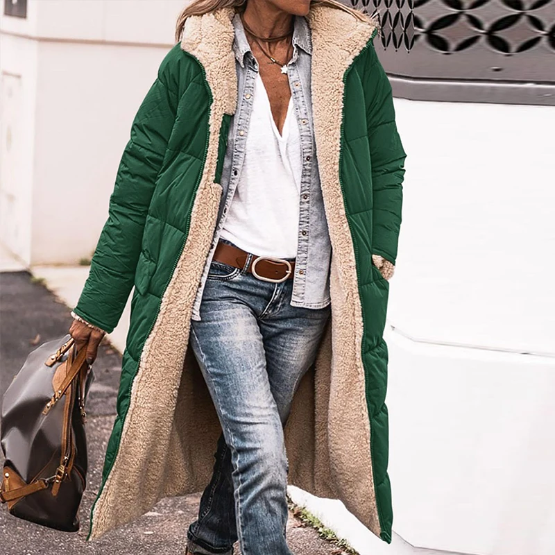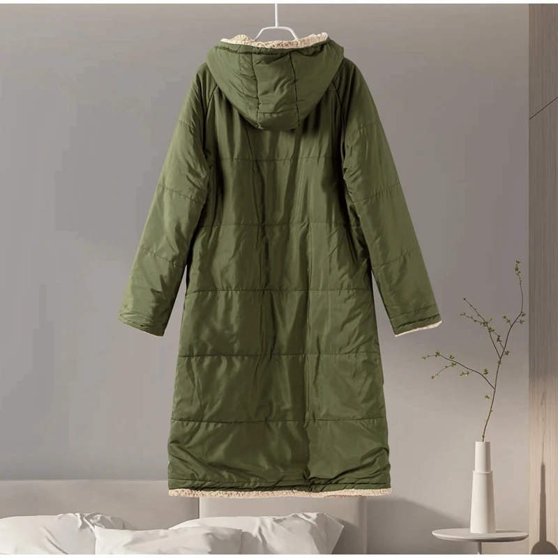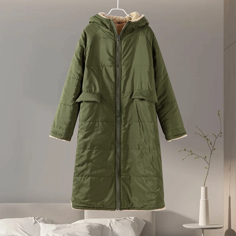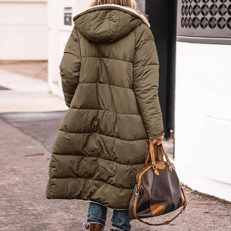 Women’s Winter Lambswool Fleece Parka | Quilted, Hooded, Long Warm Jacke