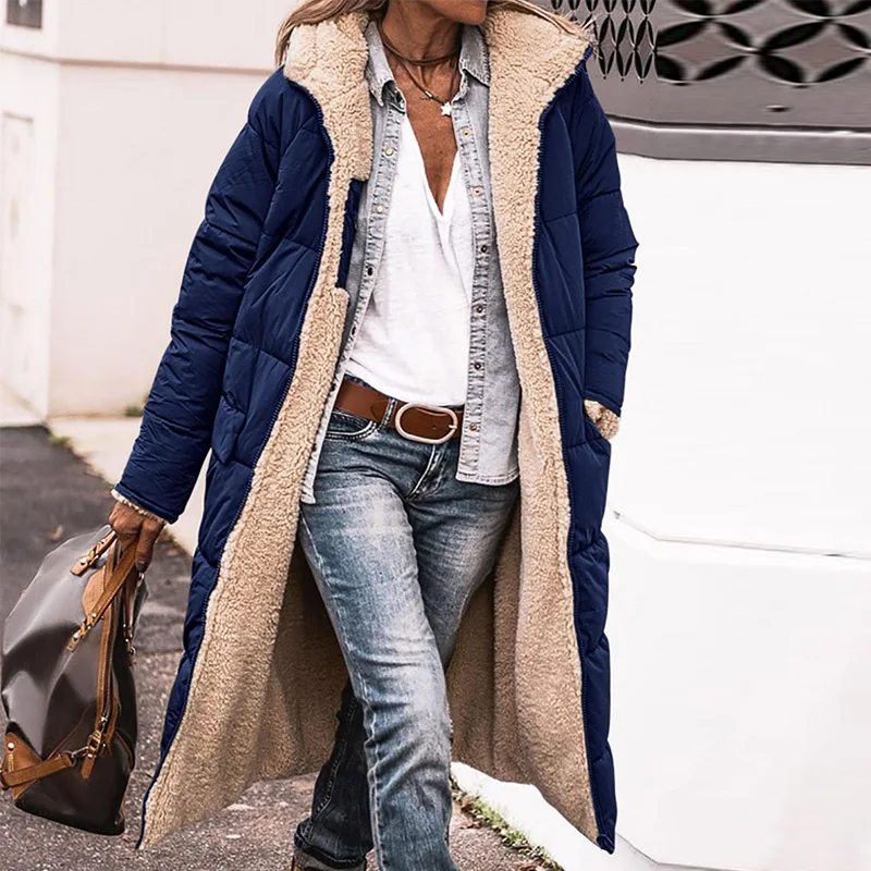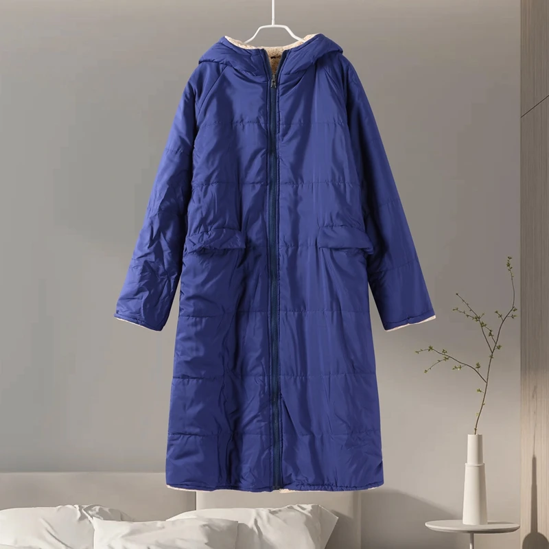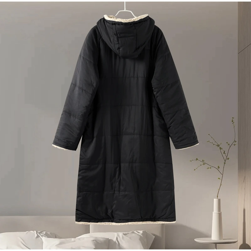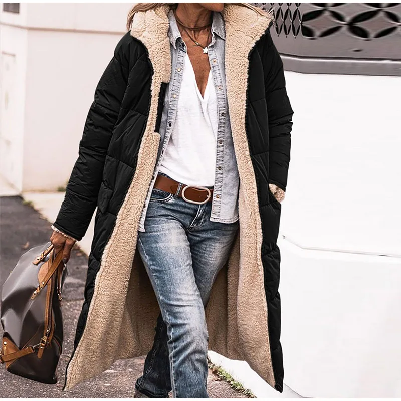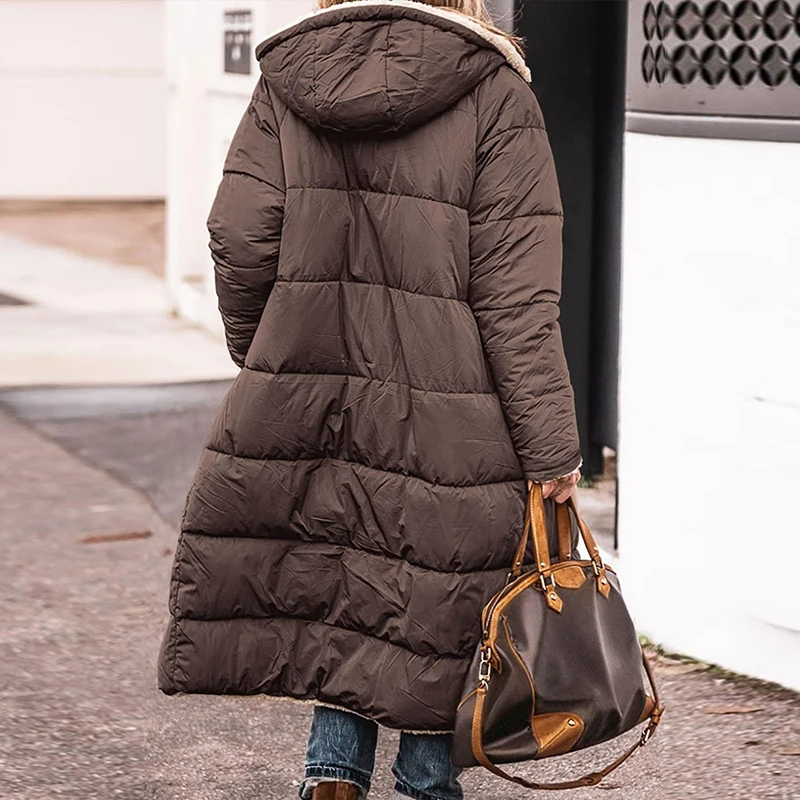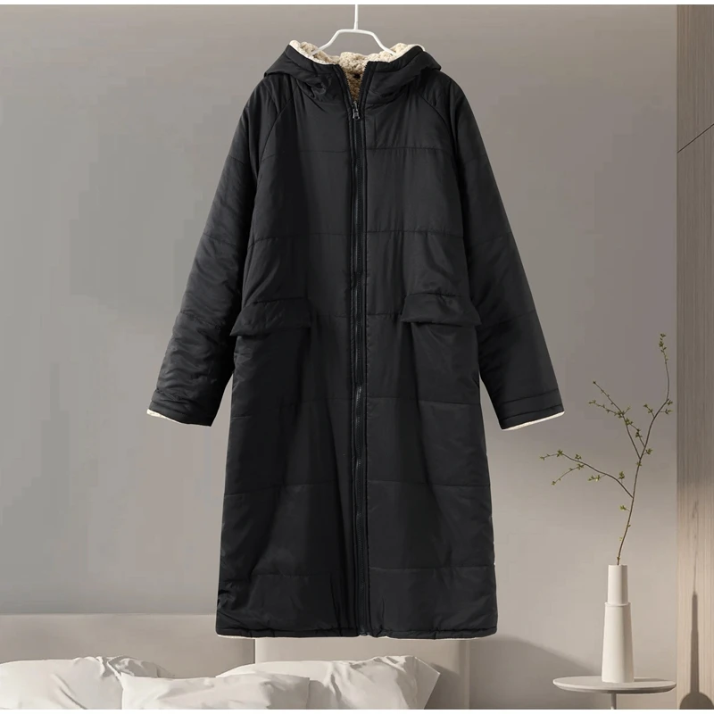 Women’s Winter Lambswool Fleece Parka | Quilted, Hooded, Long Warm Jacke